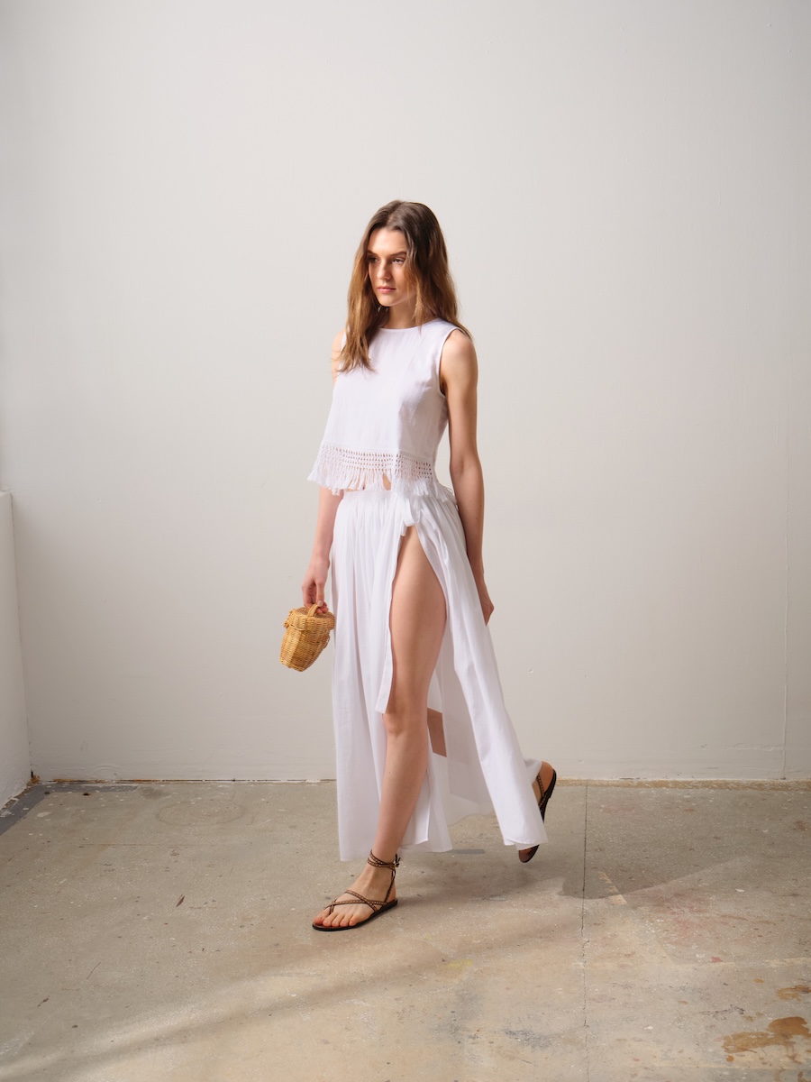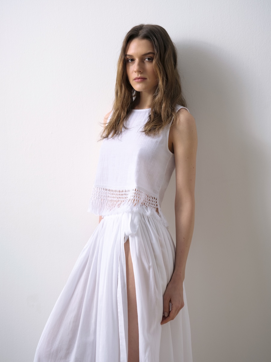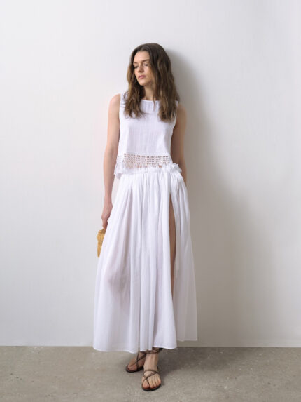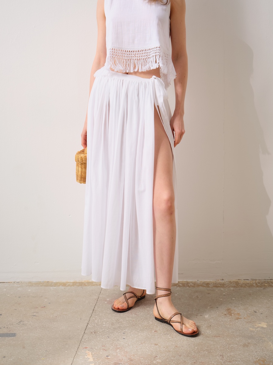 Hafif vual, belden bağlamalı maksi anvelop etek.