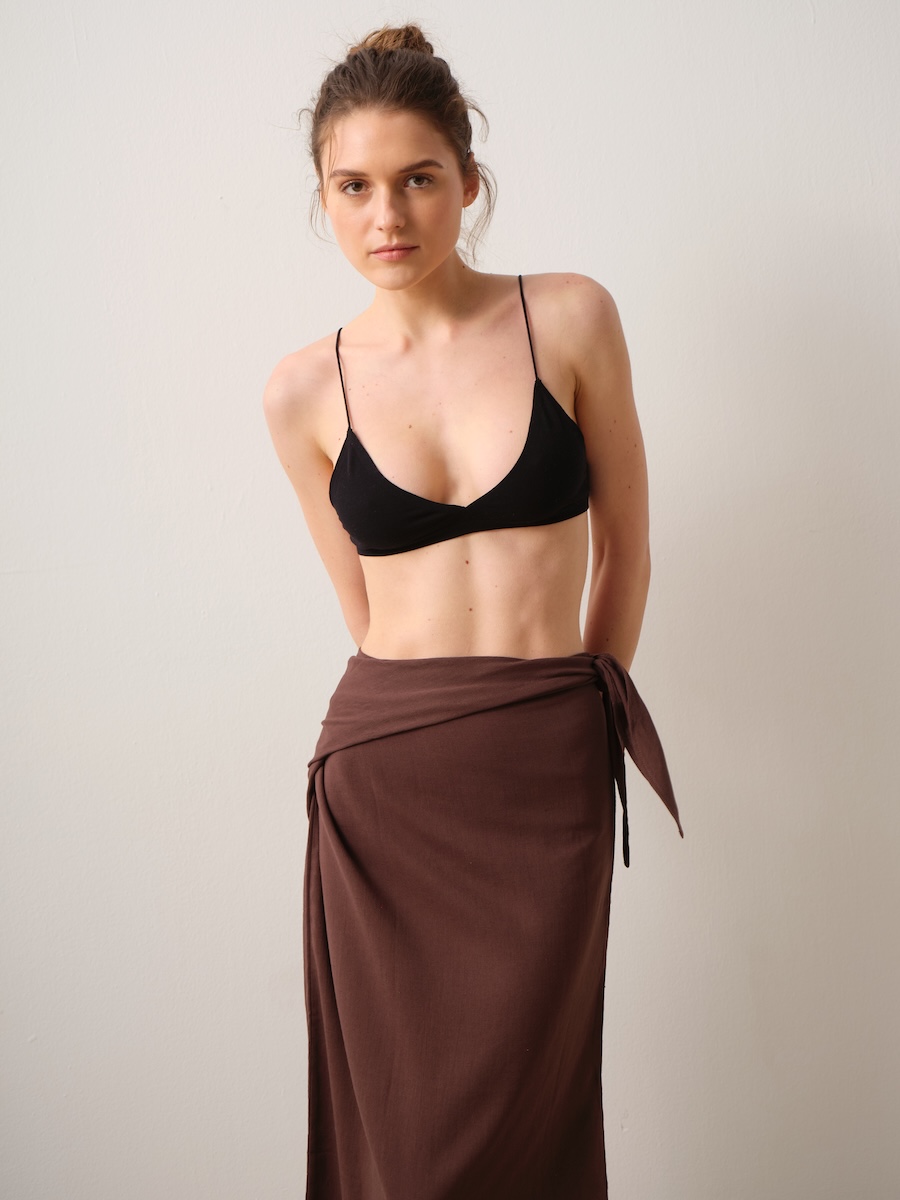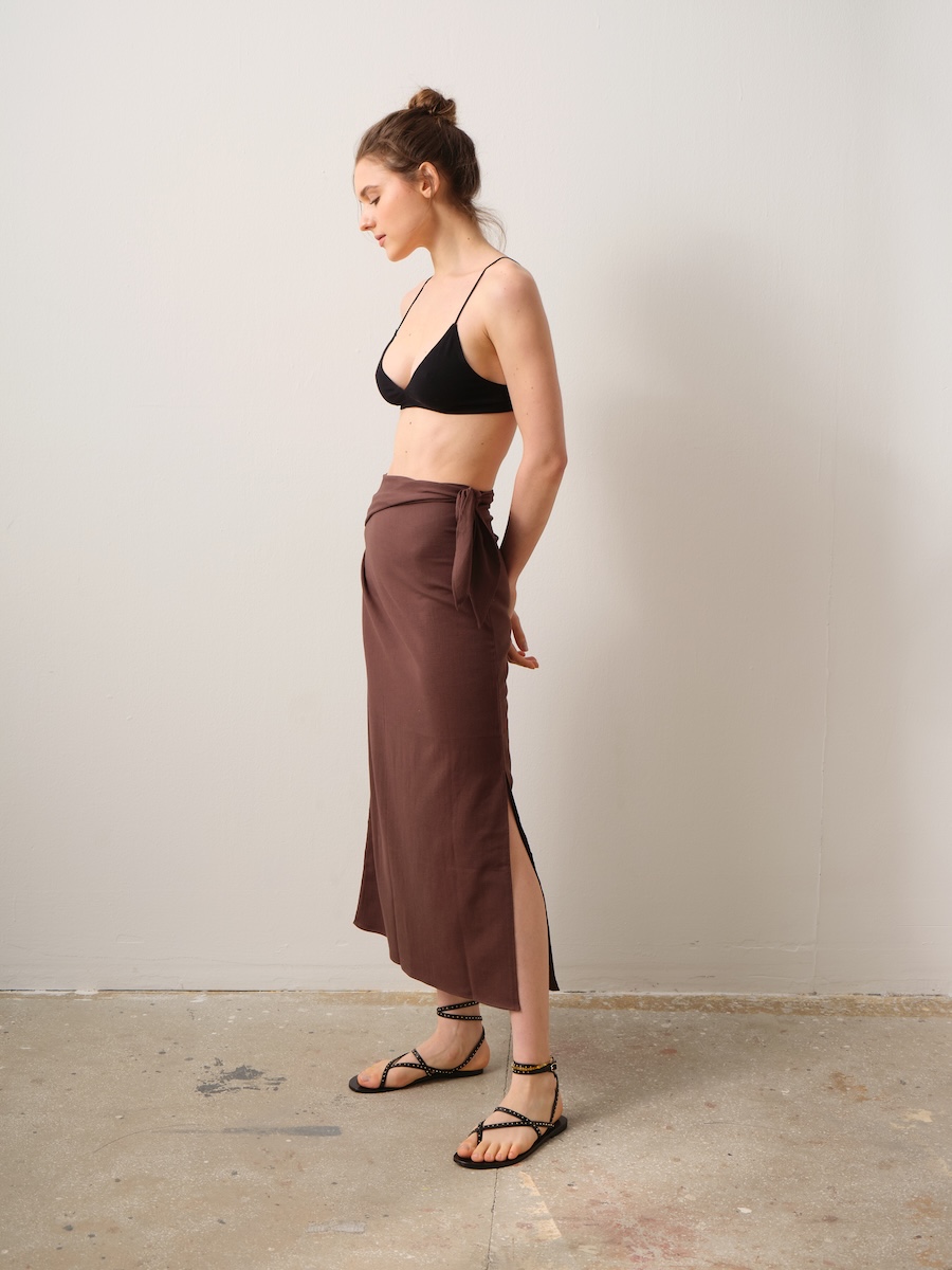 Yaru koleksiyonunun anahtar parçalarından biri olan Zamansız etek üç farklı şekilde giyilebilir. Uzerinde herhangi bir düğme veya fermuar yoktur. Bağlanarak vücuda göre ayarlanır. Rahatlıkla sahilden geceye taşınabilir.